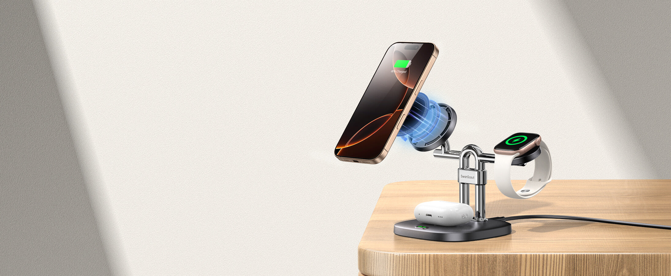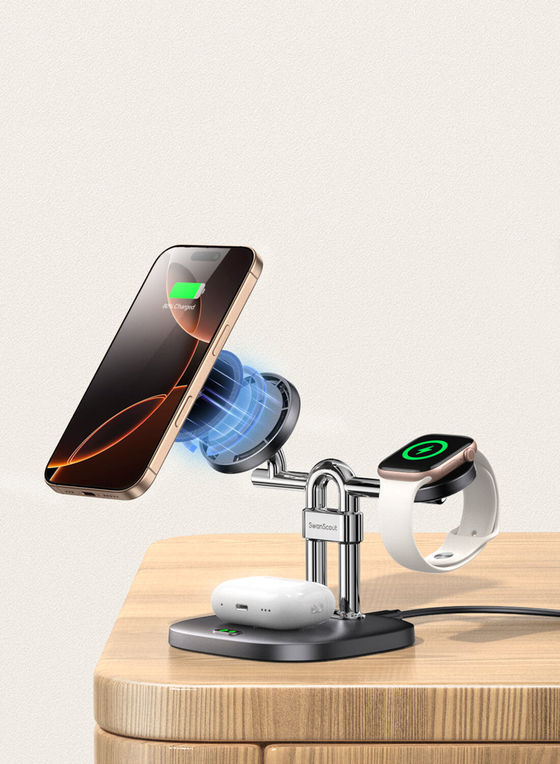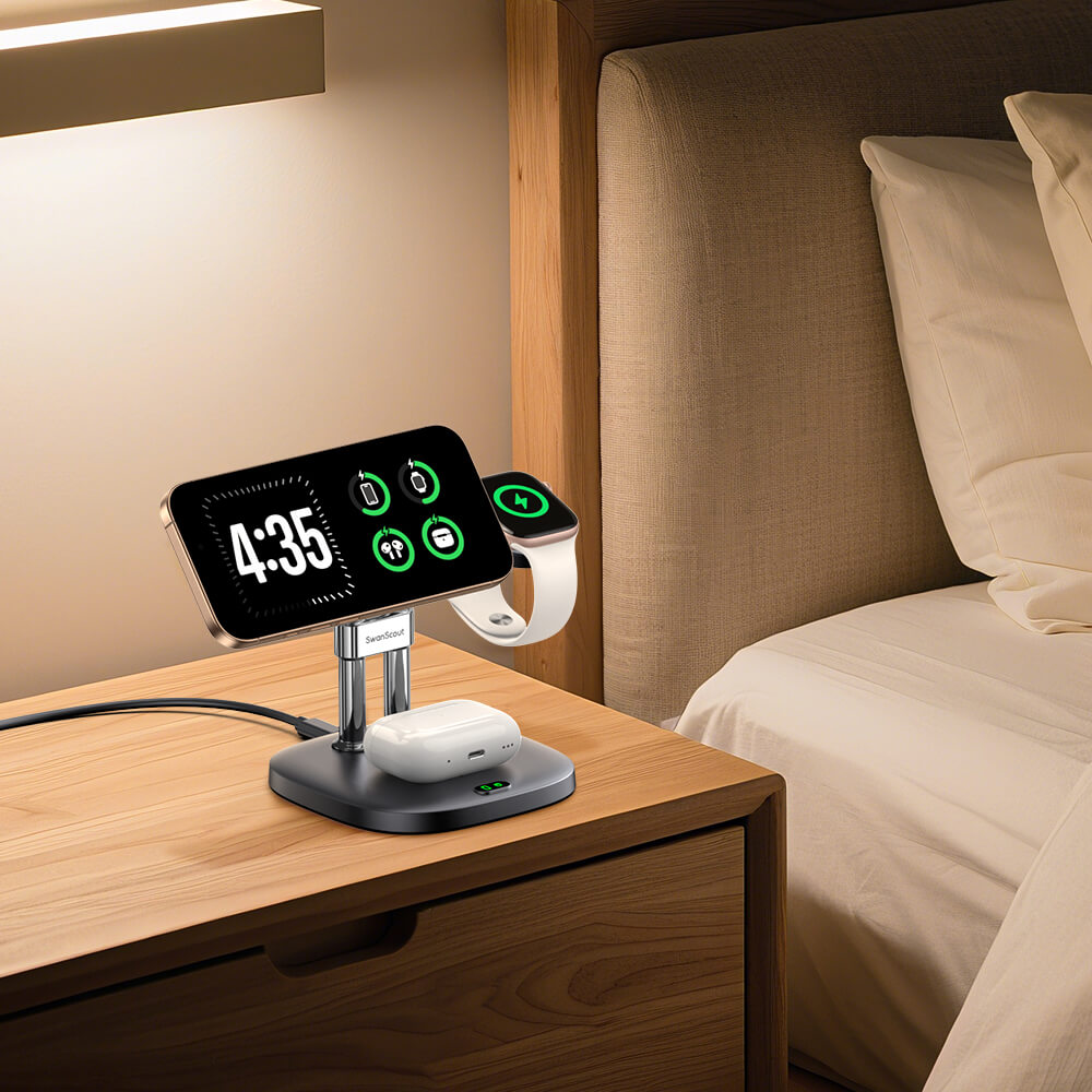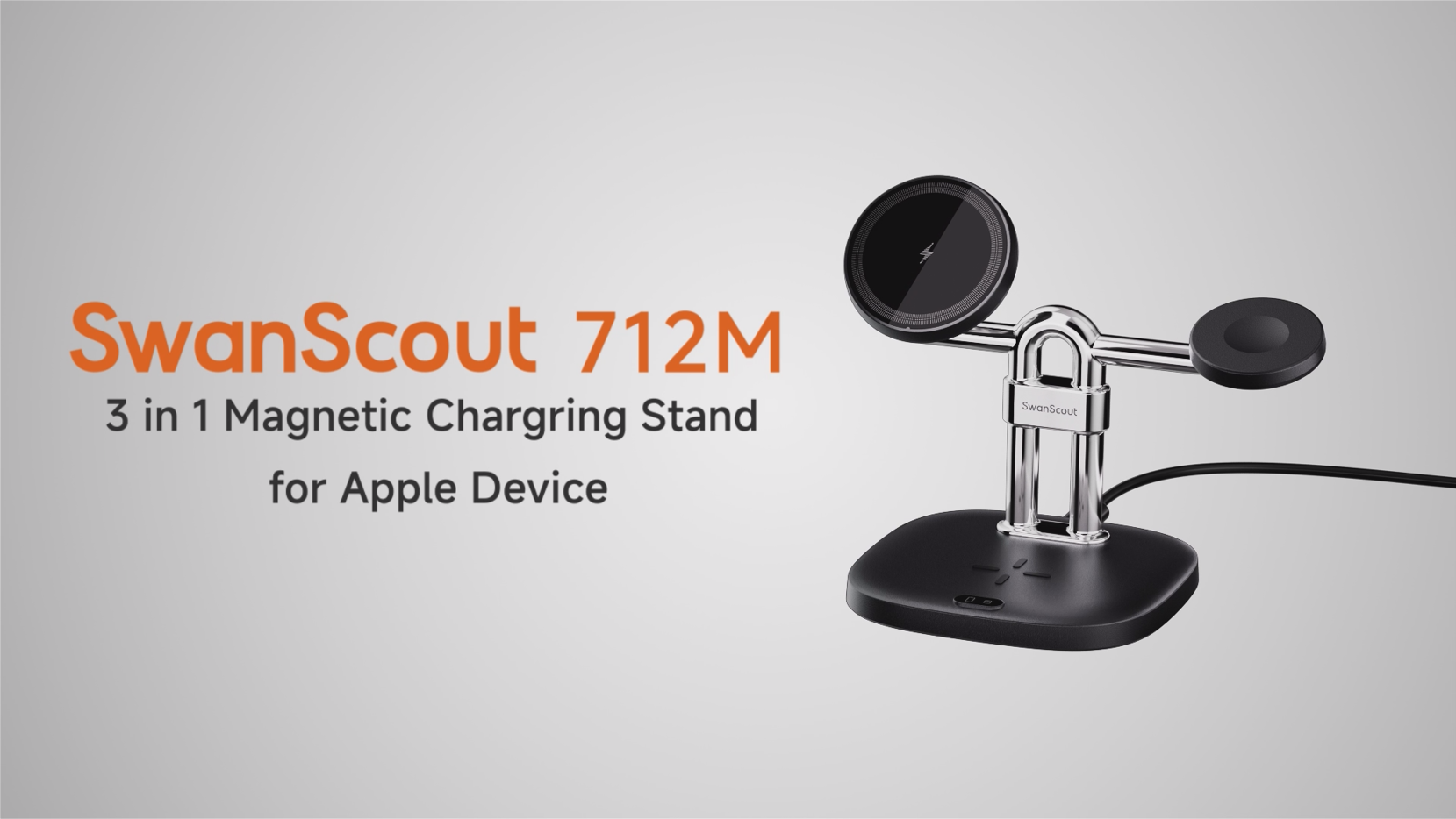SwanScout 712M – 3-в-1 магнитна безжична станция за зареждане за Apple