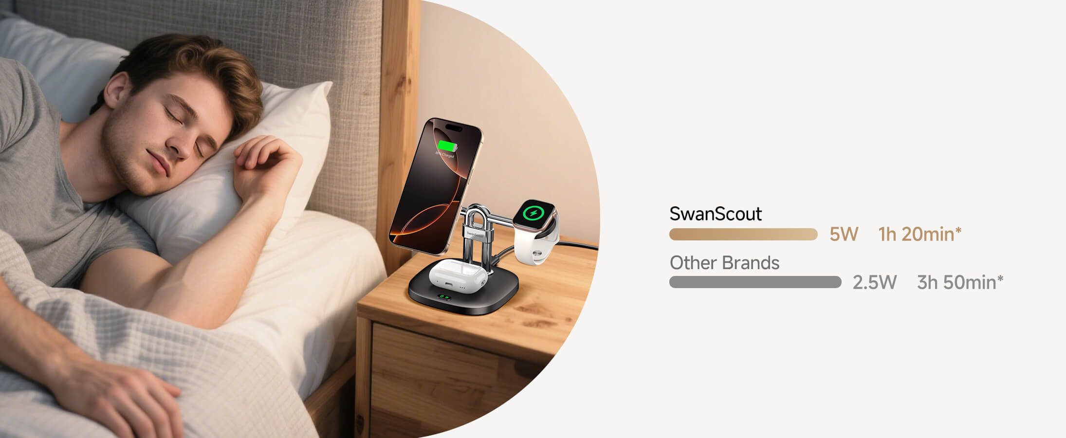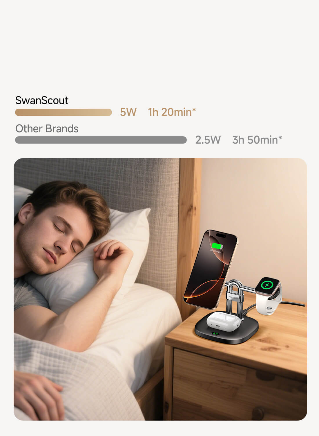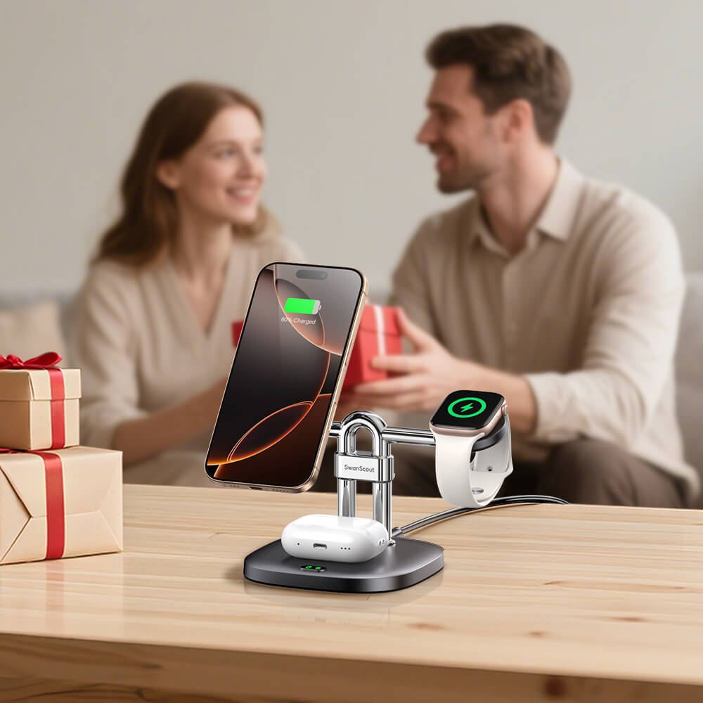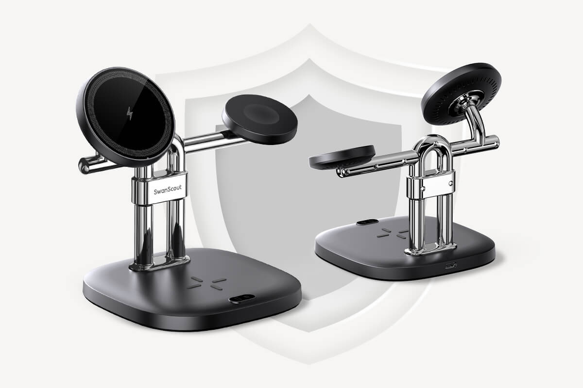 SwanScout 712M – 3-в-1 магнитна безжична станция за зареждане за Apple