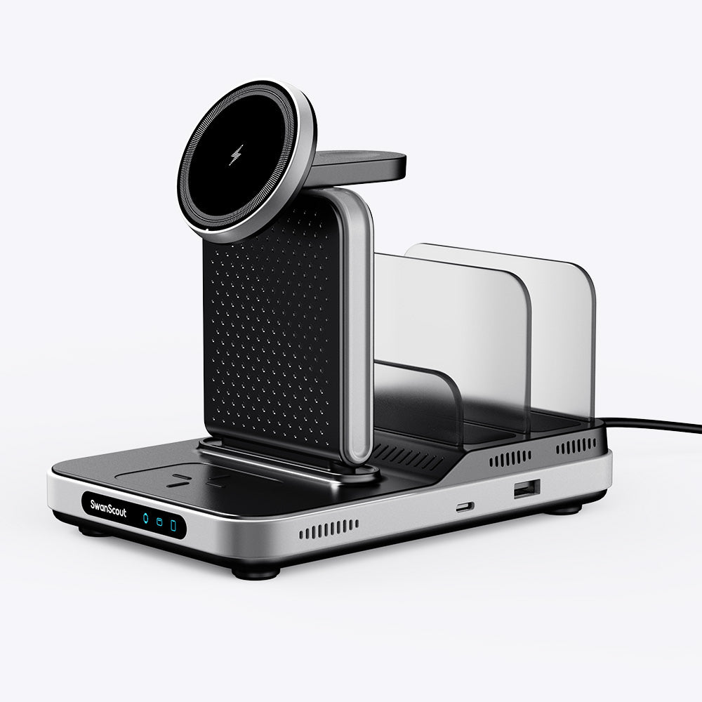 Ušetřete 20% SwanScout 304M is a sleek iPhone charging station that simplifies power management for daily Apple device users.With iPhone wireless charger fast charging, the SwanScout 304M delivers quick, reliable energy without overheating.