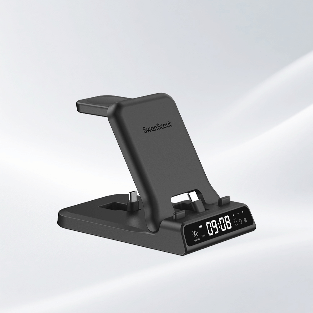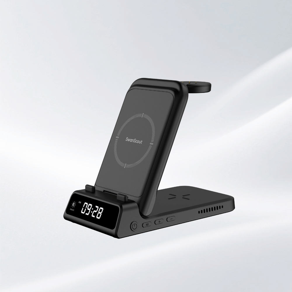 The swanscout 702G is a sleek Pixel charging station that keeps your Google devices powered while displaying time with clarity.Combining function and style, the swanscout 702G serves as a clock with charging station for both Pixel and Samsung users.
