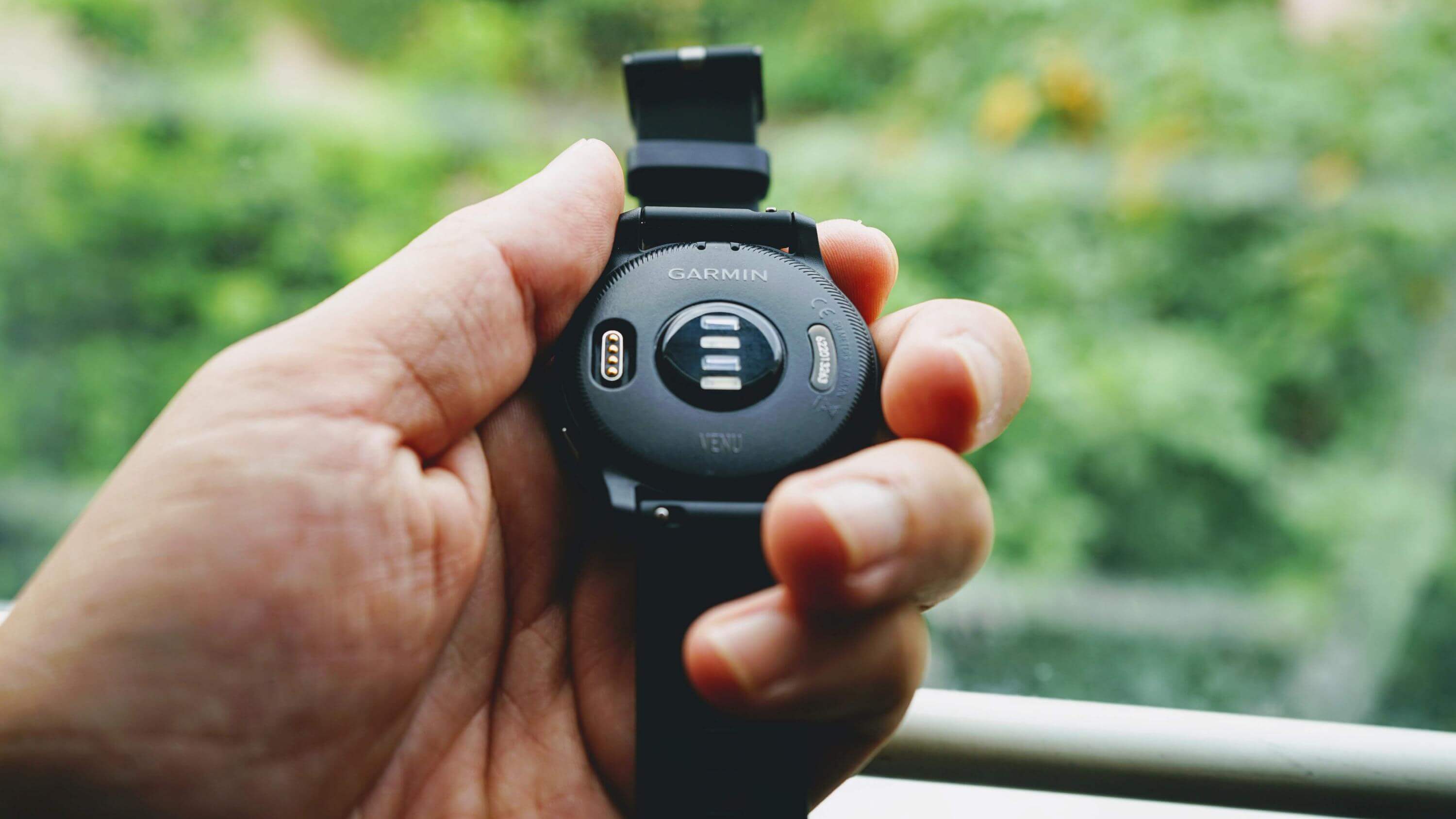 | Venu 3 (45mm) | Akun säästötila: jopa 26 päivää; GPS: jopa 26 tuntia | Neli-pinninen latausliitin | Kellon takana — alaosa |
