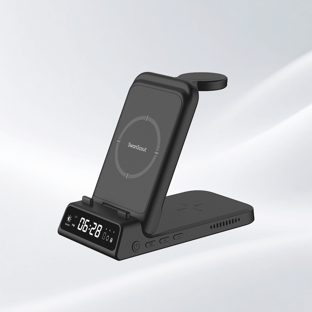 The swanscout 702G is a sleek Pixel charging station that keeps your Google devices powered while displaying time with clarity.Combining function and style, the swanscout 702G serves as a clock with charging station for both Pixel and Samsung users.