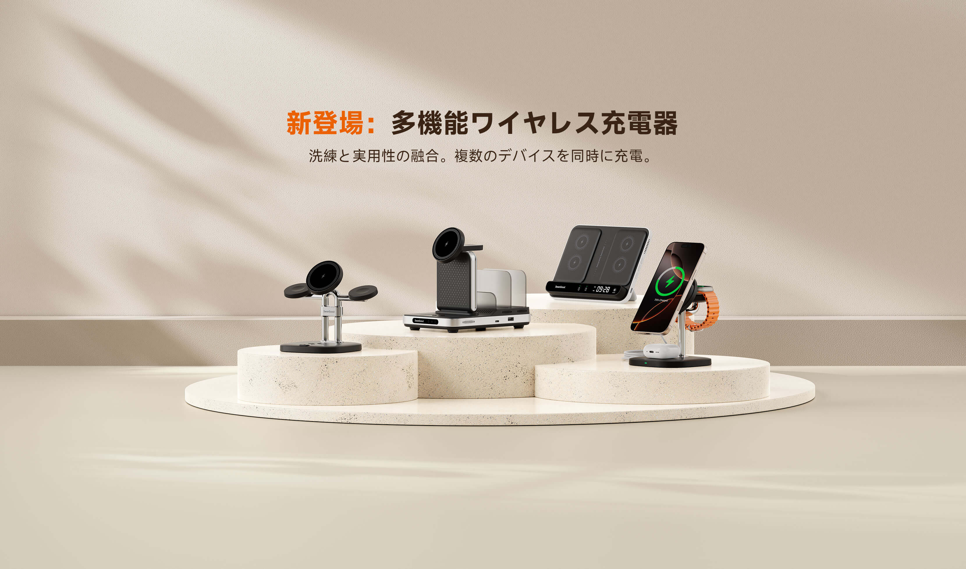 「このSwanscoutの急速充電ステーションは本当に気に入っています。galaxy s23とsamsung watch 5の所有者として、これは素晴らしい充電ソリューションです。充電スタンド、充電ケーブル、25Wプラグが入っているので、必要なものがすべて揃っています。」