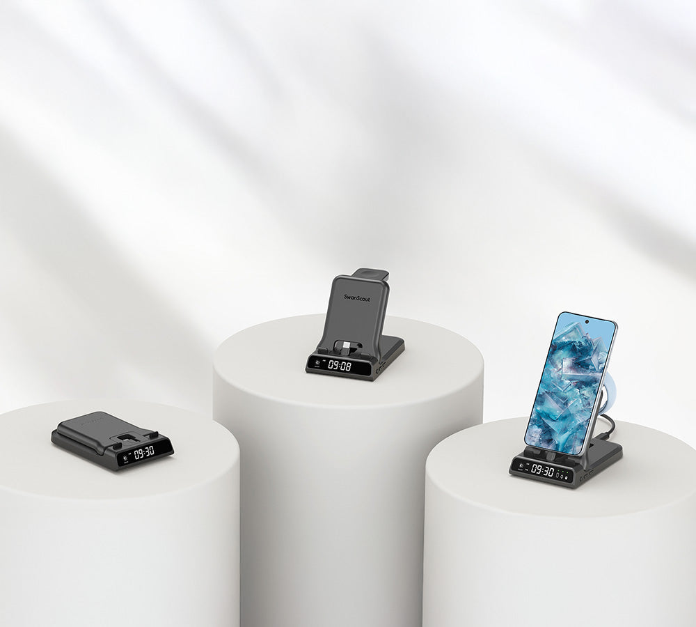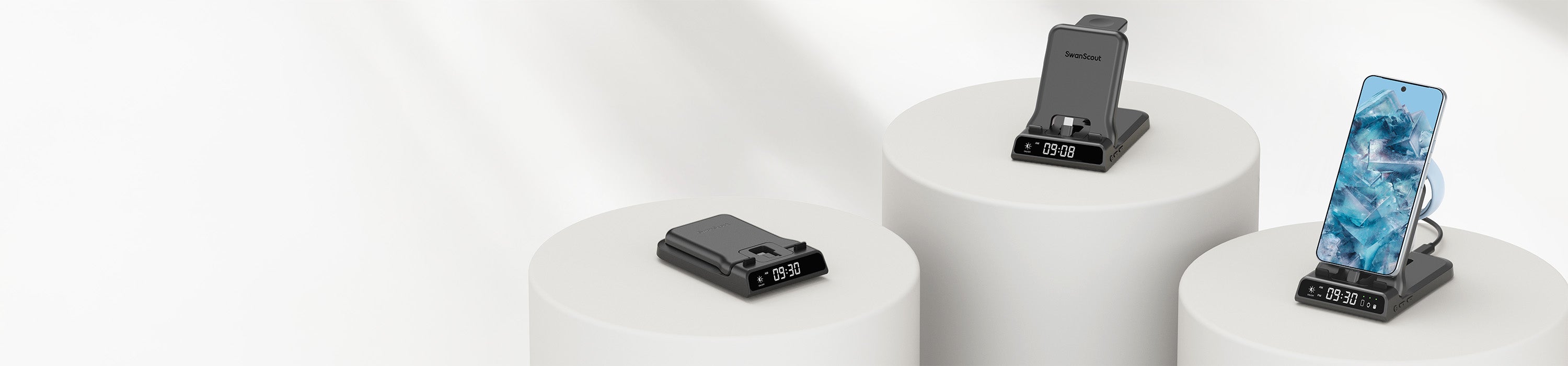 最先端のテクノロジーとエレガントなデザインを融合し、スマートフォン、イヤホン、スマートウォッチに迅速かつ信頼性の高い電力を供給する SwanScout 急速充電器をご覧ください。