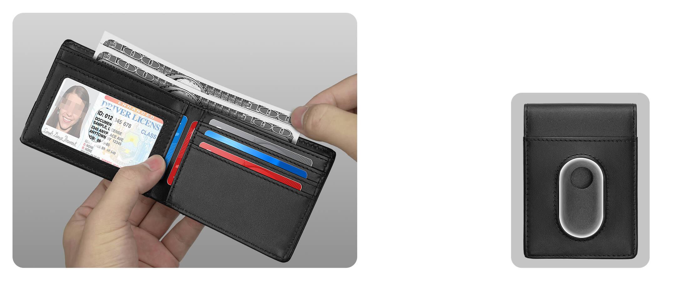 クイックアクセスIDカードウィンドウと1つのカードスロットを備えています。親指を切り欠きに滑らせるだけで、よく使うカードを素早く取り出せます。