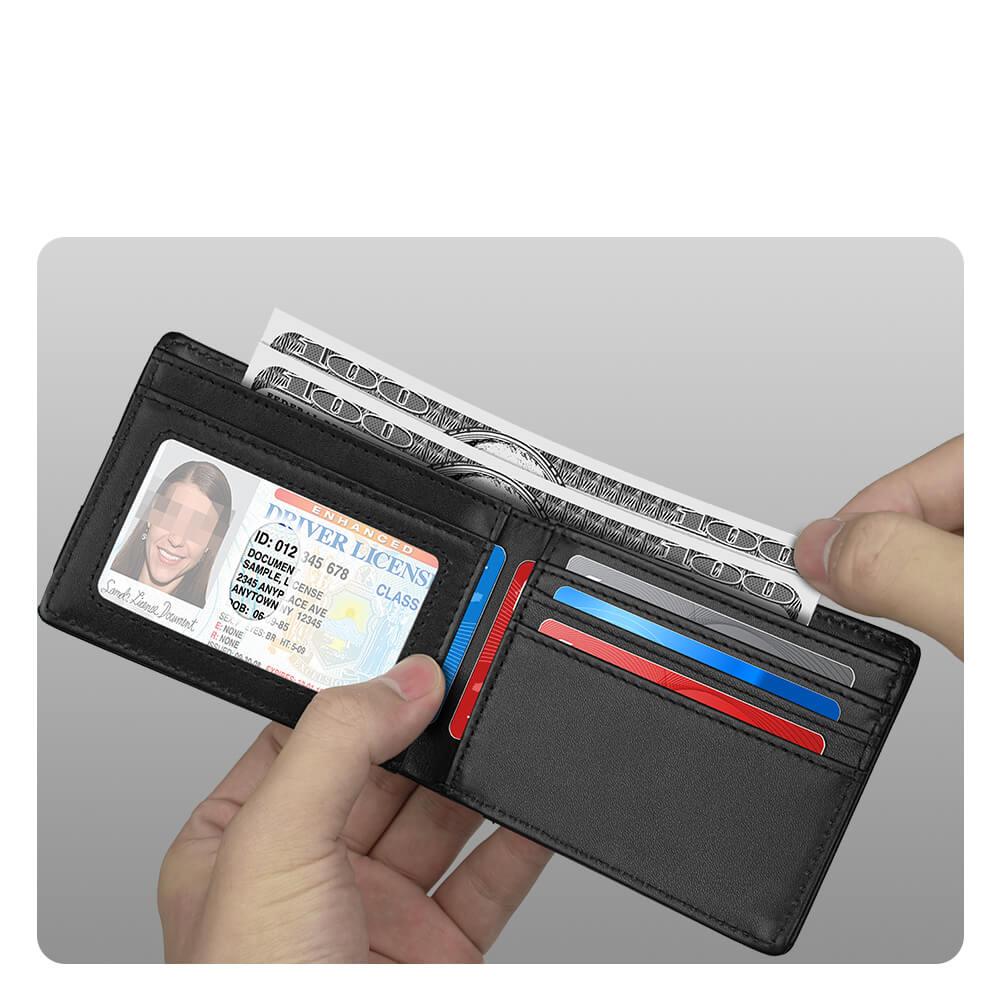 財布には8つのカードスロット、1つのIDウィンドウ、1つの紙幣用ポケットがあります。日常使用のカードを持ち運ぶのに十分な容量です。
