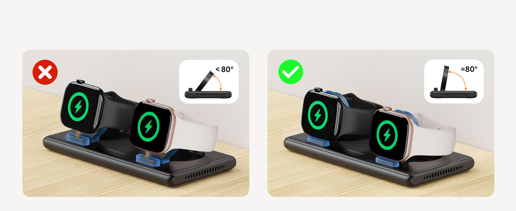 Rechargez deux Apple Watch côte à côte – parfait pour les couples ou familles.