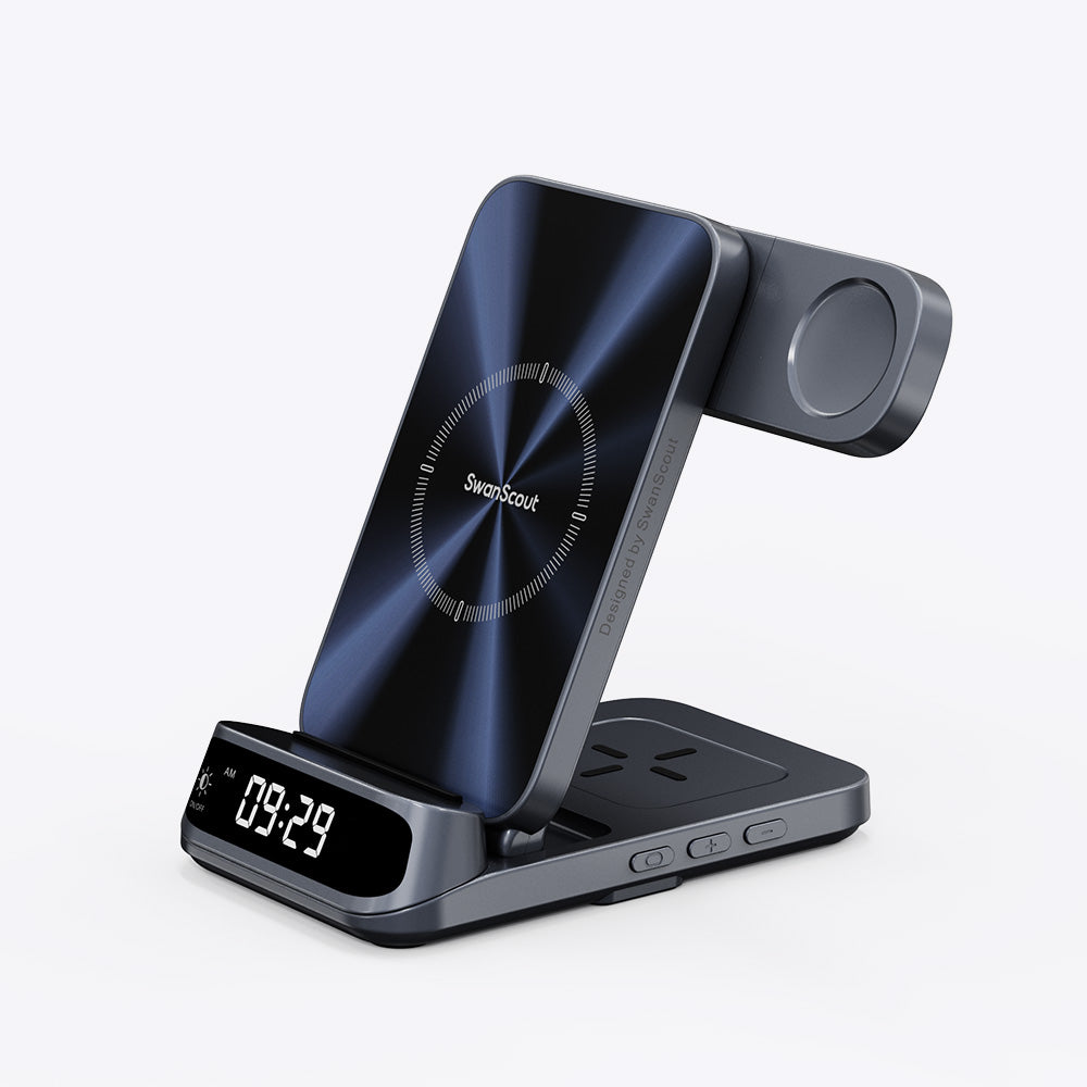 Economisește 20% SwanScout 707S is a stable and elegant 3-in-1 wireless charger compatible with Samsung devices.The SwanScout 707S is a sleek Samsung wireless charging station built for daily efficiency and smart device organization.