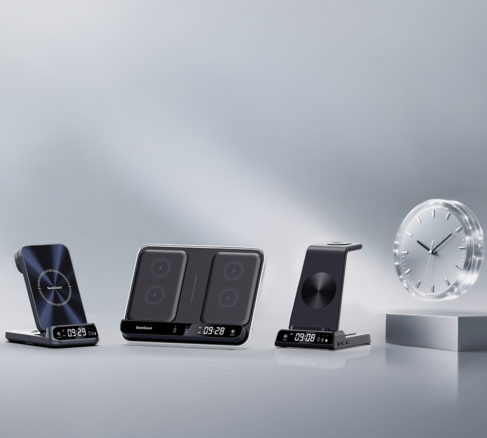 SwanScout 的时钟无线充电器集快速磁力充电和清晰的数字时钟于一体,设计优雅。无论您在书桌、床边还是学习区,都能为手机充电,让您按时完成日程安排,同时保持整洁有序的空间。