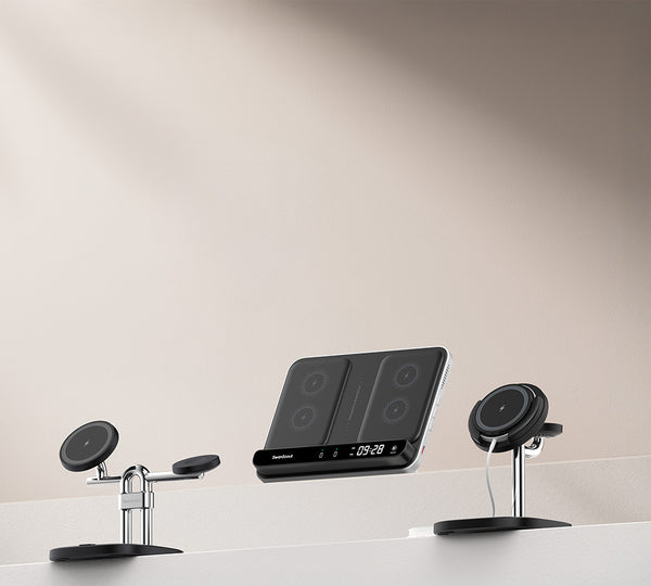 SwanScout 为三星用户提供各种定制无线充电器,从个人使用的紧凑型三合一设备到家庭使用的双手机和双手表型号,应有尽有。这些充电器专为个人和共享环境设计,可同时为多设备充电,最大限度地减少等待时间,同时提高效率。