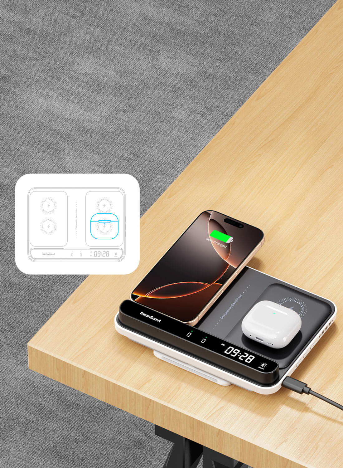 SwanScout 504 - 双手机无线充电器