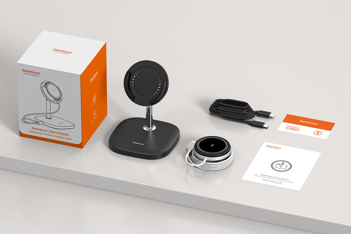 Featuring a detachable head, the SwanScout 506M functions like a wireless charging pad or magnetic stand. Pair the SwanScout 506M with your AirPods 3rd generation case for convenient and stable wireless charging.